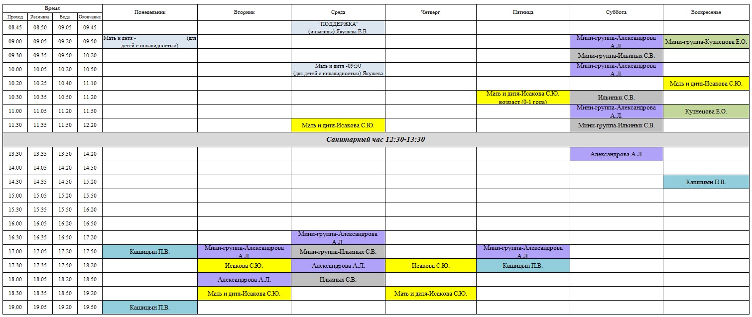 Расписание свободного плавания: