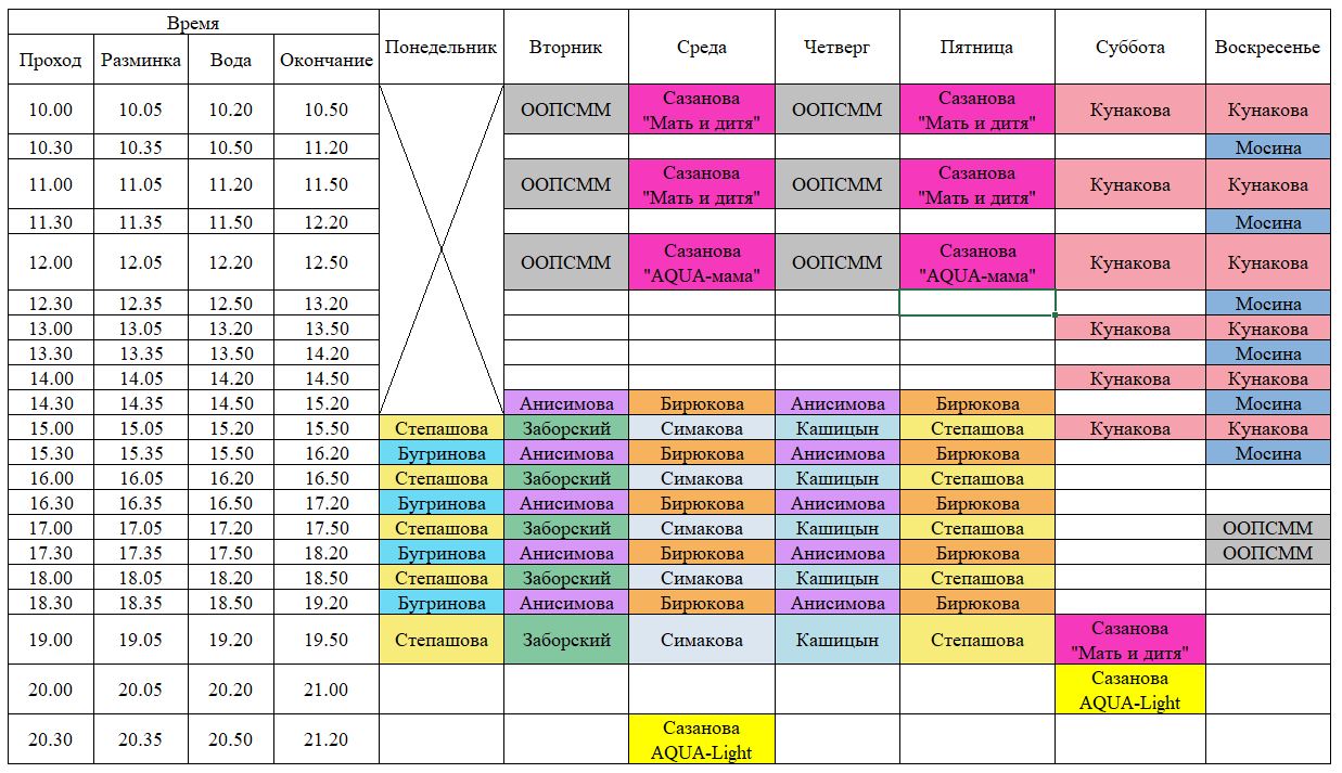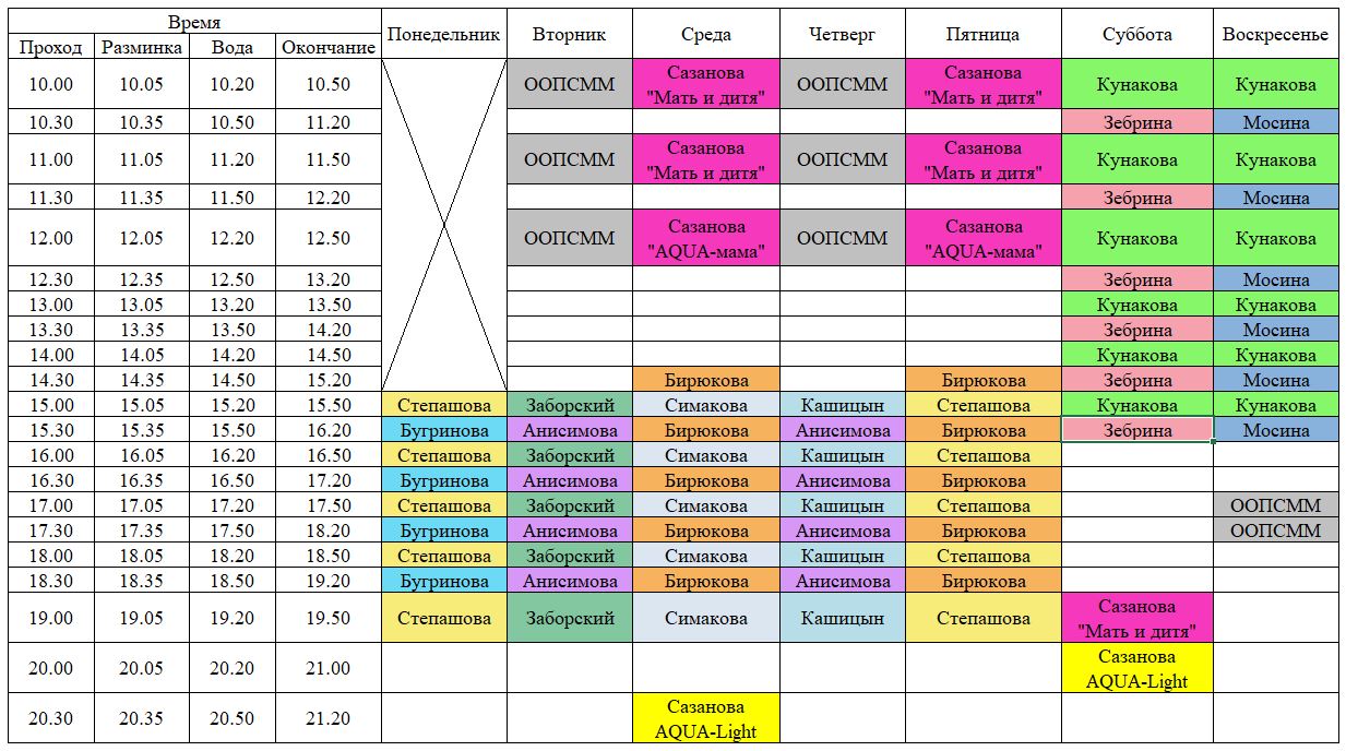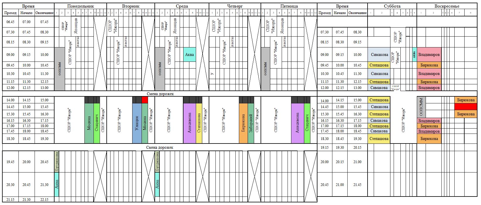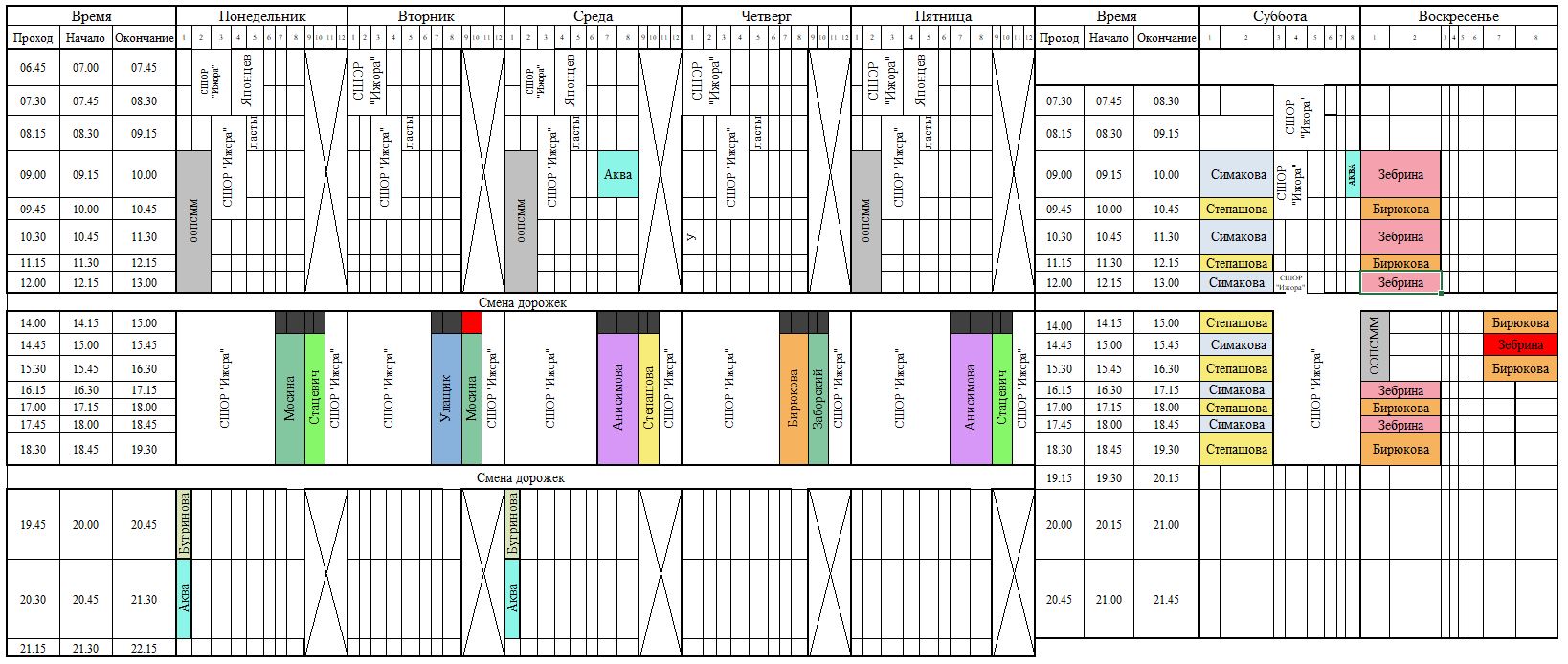 Время прохода в субботу: 7:30, 8:15, 9:00, 9:45, 10:30, 11:15, 12:00, 19:15, 20:00, 20:45.