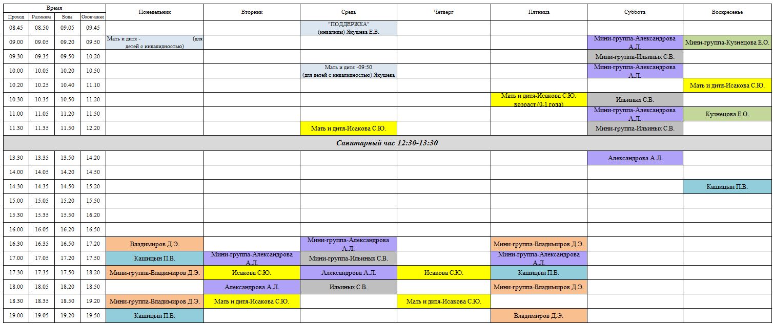 Расписание свободного плавания: