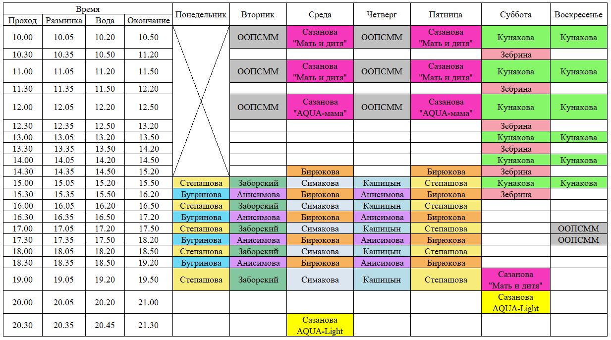 Время прохода в субботу: 7:30, 8:15, 9:00, 9:45, 10:30, 11:15, 12:00, 19:15, 20:00, 20:45.